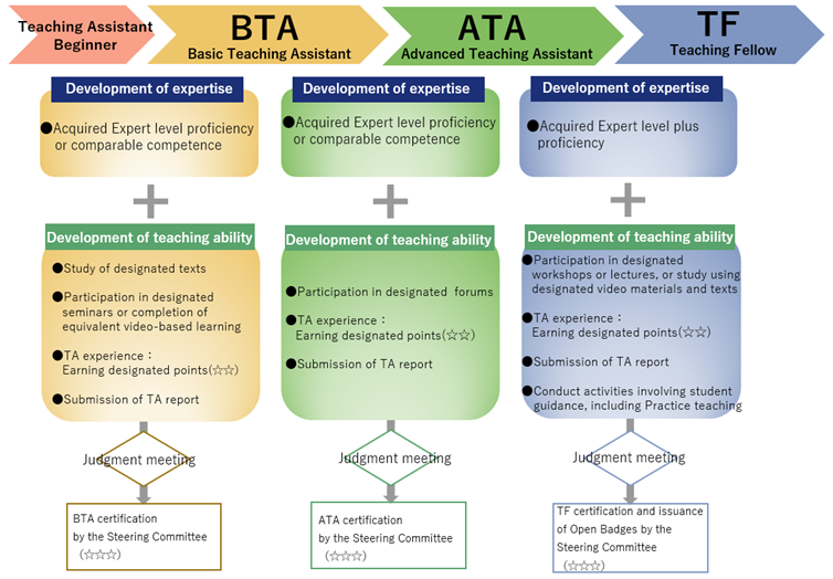 (☆☆☆) Certification for BTA, ATA, and TF is carried out twice annually, typically in September and March. “The Steering Committee” refers to the steering committee of the Center for Data Science and Artificial Intelligence Education.